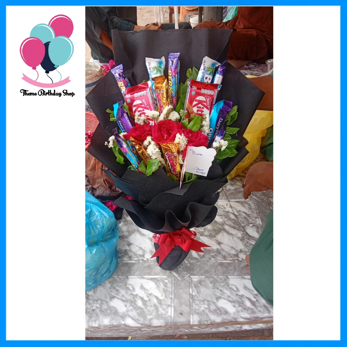 Delight your loved ones with our Luxury Mixed Chocolate & Rose Bouquet, a perfect blend of indulgence and elegance. This eye-catching bouquet features an assortment of everyone’s favorite chocolates and is artistically wrapped in premium black paper with a bold red ribbon.