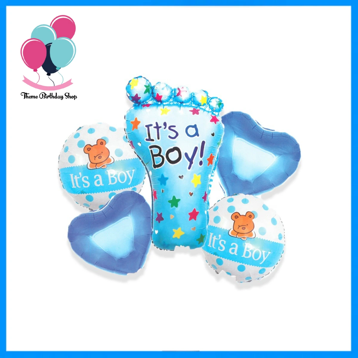 Welcome your little bundle of joy in style with our vibrant “It’s a Boy” Foil Balloon Set! Featuring a charming foot-shaped balloon adorned with colorful stars and four coordinating balloons in heart and round shapes, this set is perfect for celebrating a new arrival. Whether you’re decorating for a baby shower, sending a surprise to the hospital, or adding a festive touch to a welcome-home setup, these helium-compatible balloons will make the moment extra special. Designed with a cute teddy bear print and soft blue tones, it’s a sweet way to share the joy!