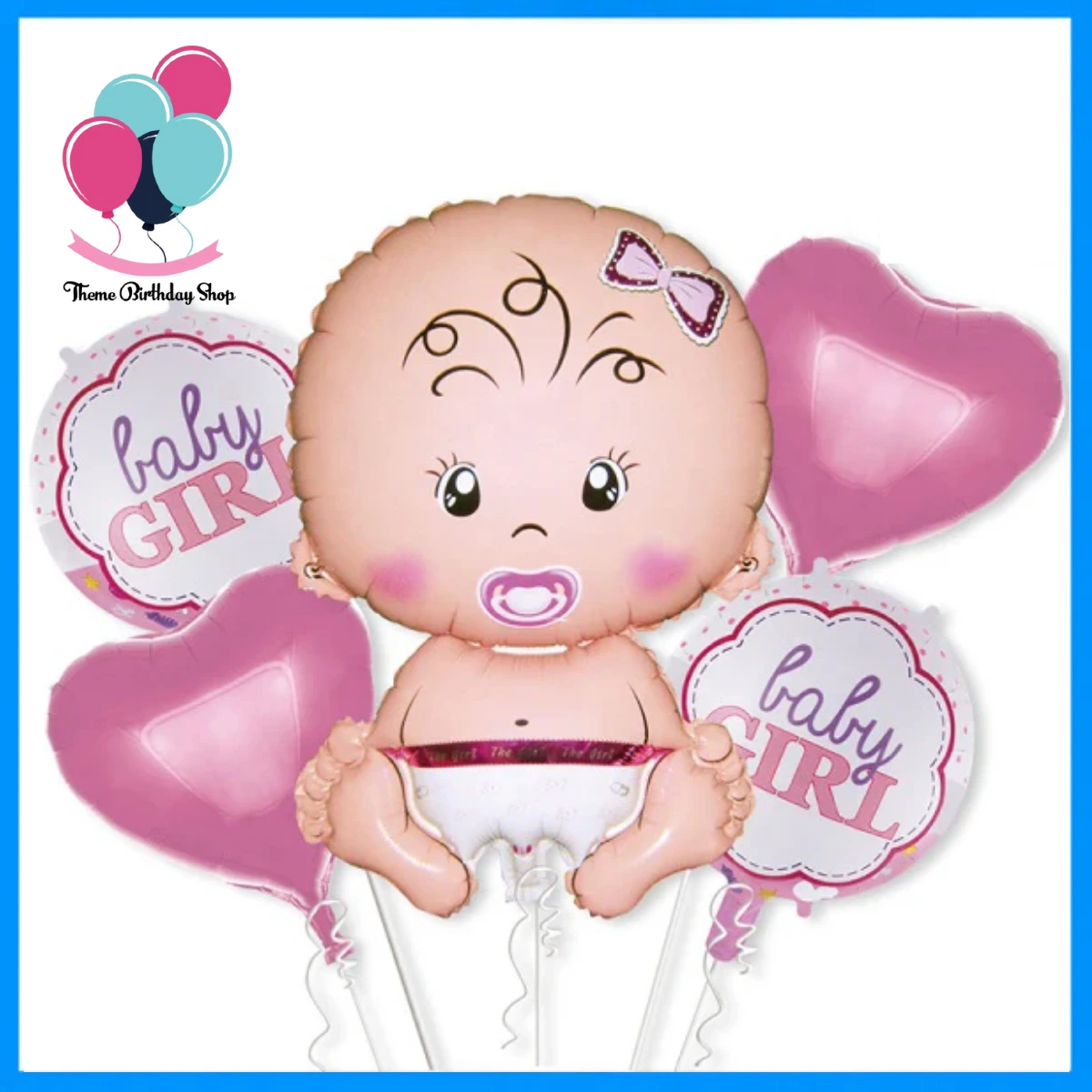 Its a Girl Baby Doll with Pacifier Theme 5 Pc Foil Balloons